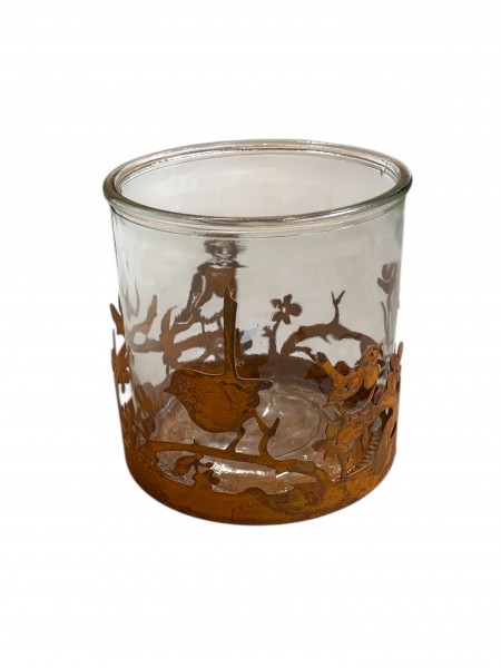 Teelichtglas mit Metallbordüre, Glas 13 x 20 cm silber antik